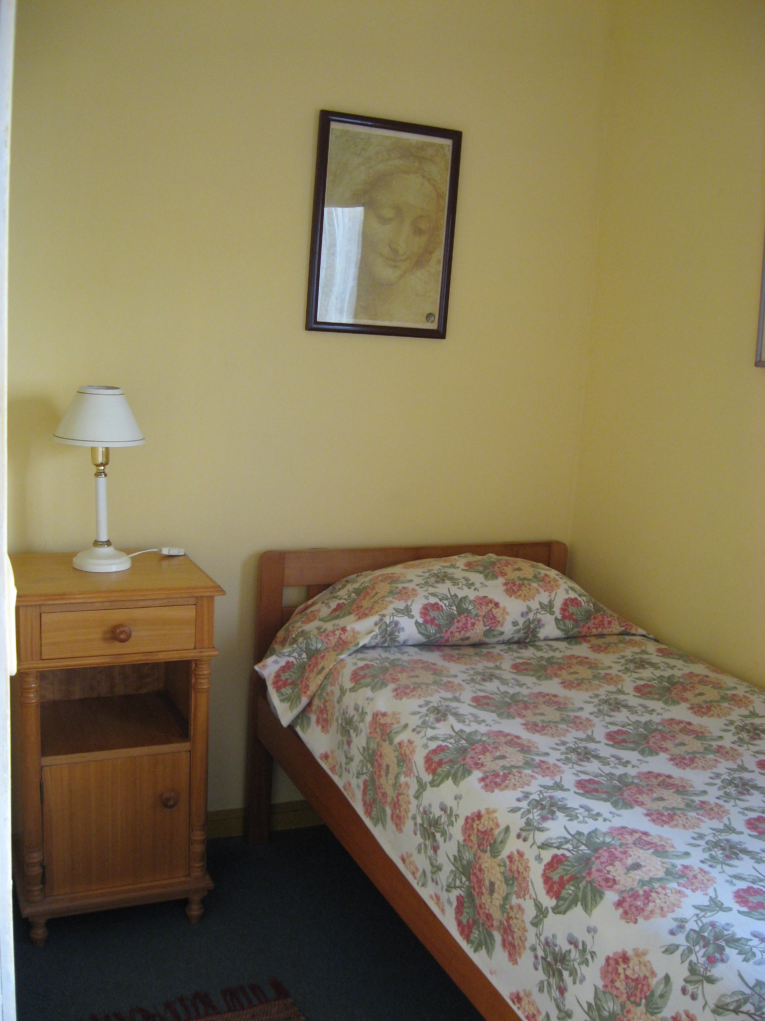 Habitación con una cama de 1 plaza, baño compartido.